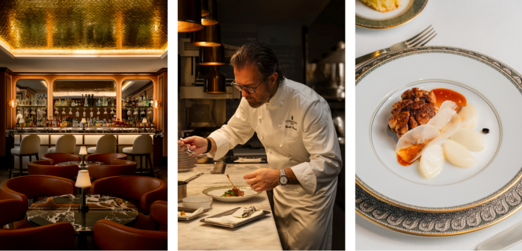 La stessa idea attraversa l’offerta gastronomica dell’hotel, interamente curata dallo chef Carlo Cracco, che sceglie Corinthia per il suo debutto romano. Viride, il ristorante gourmet affacciato sul cortile interno, rievoca i giardini segreti di Roma e interpreta la cucina italiana contemporanea attraverso un linguaggio stagionale, essenziale e profondamente legato al prodotto. La Piazzetta, cuore informale dell’hotel, richiama invece la tradizione romana della convivialità, mentre l’Ocra Bar, con i suoi toni caldi e notturni, accompagna l’aperitivo e la sera in un’atmosfera intima e raccolta.