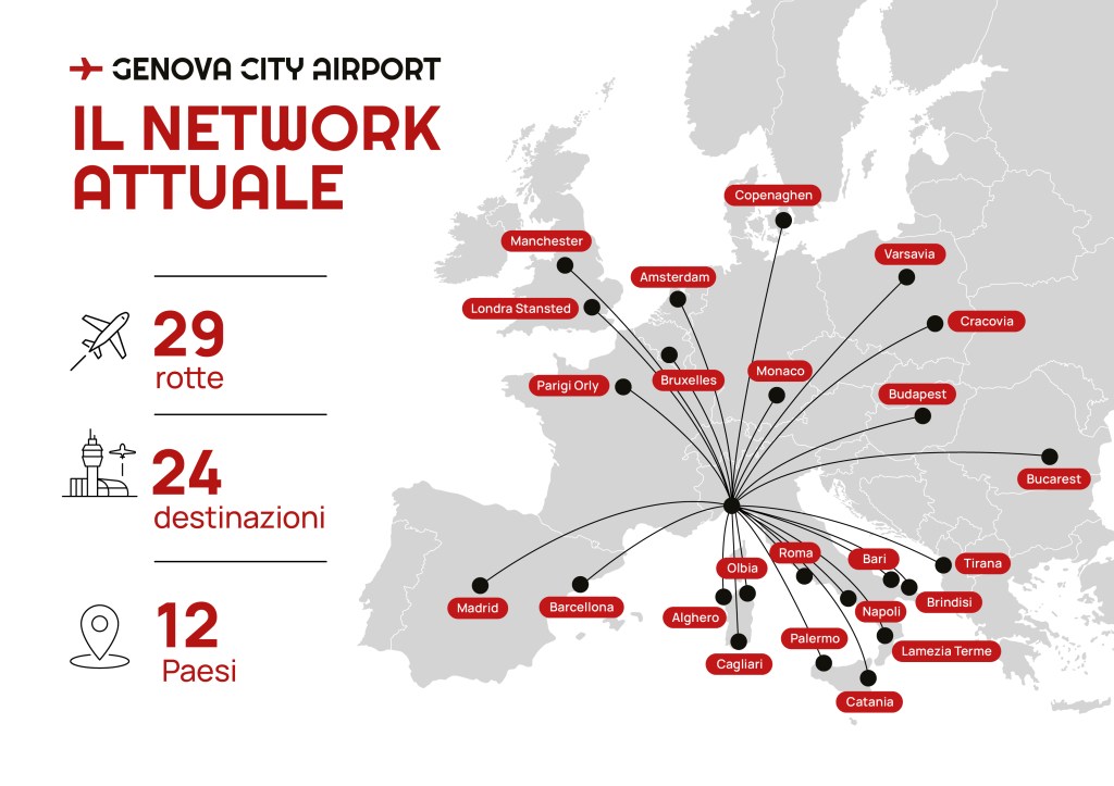 Il 2 febbraio 2026 Aeroitalia ha inaugurato il nuovo collegamento Genova-Roma Fiumicino, che rafforza il ruolo di Genova come scalo di riferimento per il traffico business e leisure. Il volo Genova-Roma Fiumicino ha le seguenti frequenze