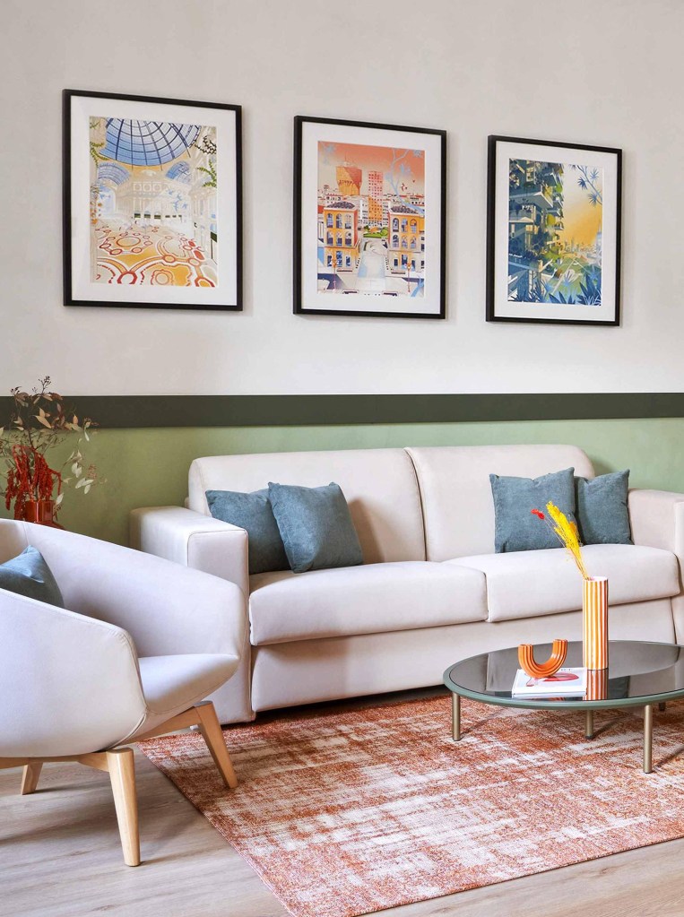Gli spazi comuni e le camere sono completate dai sedici soggetti delle opere grafiche originali, in cui si ritrovano anche le scelte cromatiche del progetto di interior design, mentre le amenities sono pensate come micro-edizioni da conservare, in cui anche il packaging diventa un appunto visivo che invita a riconoscere o scoprire una parte della città.