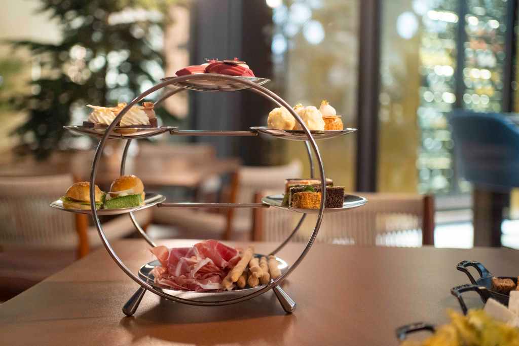 L’esperienza invernale continua e dopo la Fonduta gli ospiti possono scegliere nuovamente tra due Alzatine che rispettivamente comprendono: Prosciutto crudo stagionato e grissini, Paninetto con guacamole e salmone affumicato, Quiche spinaci e Parmigiano Reggiano, Crocchetta di cicoria con maionese all’acciuga, Sandwich di pane nero con pollo, pomodoro e lattuga – mentre in quella dolce: Madeleine al cioccolato, ispirazione lampone, Rocher esotico, cocco e sablé alla vaniglia del Madagascar, Tartelletta alla nocciola IGP del Piemonte, cioccolato Jivara 43% e fava tonka, Choux con chantilly al caramello salato, cioccolato biondo Dulcey 35% e crema al mascarpone, Macaron alla fragola e petali di rosa, Cioccolato Guanaja 70%, bombardino e panna della Valtellina.