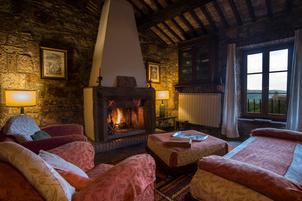 Nel cuore della corte medievale del Castello di Proceno, questo alloggio sembra custodire i sussurri di un passato che ancora abita le sue mura. L’ingresso privato conduce a un ampio salone dominato da un camino storico, dove luci soffuse e arredi d’epoca creano un’atmosfera sospesa, carica di fascino e memoria. Un soggiorno che profuma di storia e silenzio, perfetto per chi cerca un’esperienza fuori dal tempo. Link all’alloggio: https://www.airbnb.it/rooms/30779647