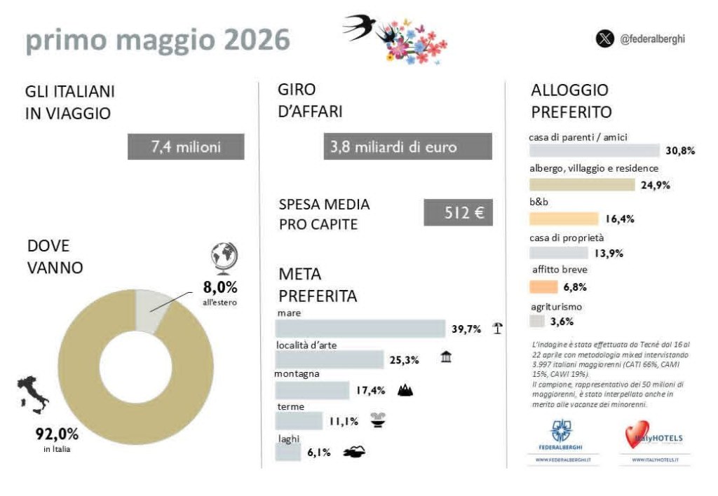 Ponte 1 Maggio, il mare resta il top per gli italiani