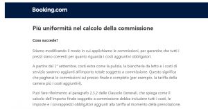 Una modifica che non lascia scelta ai property manager se non quella di alzare i prezzi o di abbandonare il canale di intermediazione: la commissione di Booking.com può arrivare fino al 21% e la sua estensione ai servizi extra appare una misura onerosa e ingiusta, si legge in una nota dell’Associazione.