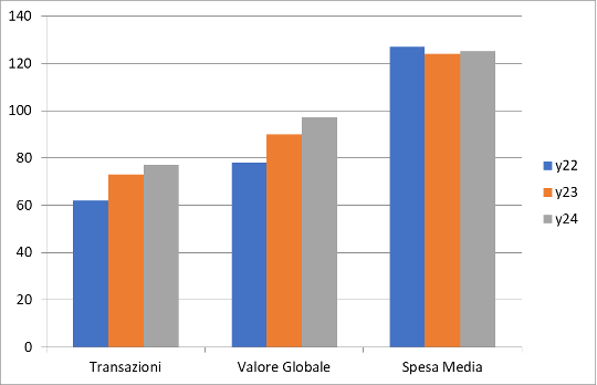 Il BTT degli ultimi tre anni mostra chiaramente la dimensione dell’impatto dovuto alla crisi pandemica. Le transazioni del ‘22 – ’23 e ‘24 segnano la ripresa dei viaggi d’affari con 62 e 73. I prezzi medi sono quindi cresciuti costantemente, toccando il loro massimo nel 22 (ind 127). Il 2023 mostra infatti i primi timidi segnali di riduzione della spinta inflattiva e speculativa che si confermano anche per l’anno 2024. Quest’ultimo mostra un sensibile incremento sia nelle transazioni sia nel valore.
