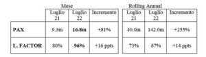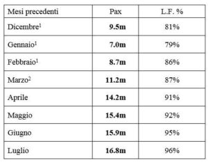 Ryanair Holdings plc ha diffuso oggi (Mercoledì 3 Agosto) le statistiche sul traffico per il mese di luglio: