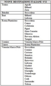 Ryanair ha annunciato il suo attesissimo operativo per l’estate 2022, lanciando 47 nuove rotte [oltre 720 in totale] verso una serie di destinazioni europee. I turisti italiani potranno raggiungere destinazioni soleggiate come Agadir, Barcellona e Lisbona disponibili con tariffe a partire da soli 29,99 euro. L’apertura di queste 47 nuove rotte nel network italiano di Ryanair rafforza l’impegno della compagnia aerea nei confronti dell’Italia per la ricostruzione del settore turistico del Paese, svolgendo un ruolo chiave nella ripresa dei posti di lavoro e dell’economia locale.