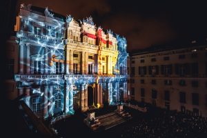 Uno show eccezionale, creato dal DJ e produttore francese Michael Canitrot, che ha combinato musica elettronica, patrimonio culturale e digital art, facendo scoprire Palazzo Ducale da un nuovo punto di vista. La facciata principale del palazzo, su piazza Matteotti, si è animata in maniera spettacolare con enormi scenografie, create da un’incedibile unione di light-show e video-mapping. Le scenografie erano ispirate a Genova, con il suo mare e la sua storia, legata in maniera indissolubile a quella di Costa. Durante lo show, le migliaia di spettatoti che hanno gremito piazza Matteotti hanno ballato al ritmo della musica elettronica suonata dai DJ.