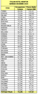 Analizzando l’andamento a consuntivo della R.O. su scala nazionale, emerge che di tutte le 39 città monitorate solo Sassari non supera la simbolica quota (in termini gestionali) del 60%. Sono 14 le città con un’occupazione camere superiore al 70%, con 4 città a guidare la classifica con oltre il 75% di R.O.: Como (76,5%), Roma (76,3%), Milano (75,6%) e Firenze (75,3%).