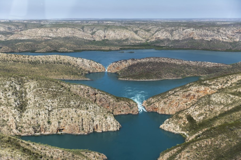 Nella remota regione settentrionale del Kimberley, le Horizontal Falls sfidano la logica: l’acqua non cade verticalmente ma scorre con vigore tra due canyon stretti, creando rapide potenti e spettacolari che ricordano una cascata che si muove però…in orizzontale! Questo fenomeno idrodinamico raro al mondo offre un’esperienza adrenalinica unica, combinando paesaggi spettacolari e avventura a contatto con la natura più selvaggia.