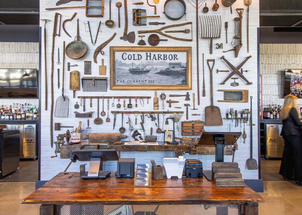 L’acclamata azienda dell’ospitalità multi-concept Common Craft offre nel quartiere di South Boston una nuova esperienza culinaria e di bevande all’ 85 Damrell Street. Servizio completo al tavolo e un programma di ristorazione in evoluzione guidata dallo chef Tony Messina, vincitore del James Beard Award. Una sala da pranzo da 133 posti, due bar, tra cui The Stillroom, un intimo cocktail spot e The Current, locale con una serie di menù a rotazione, che ogni mese evidenzia un tema diverso (ingredienti, tecniche, luoghi o persone), con particolare attenzione ai produttori artigianali e alla narrazione di cucina creativa. The Current si traduce anche in arte, con un’accattivante esposizione multimediale mista di artisti locali che si estende su una grande parete vicino all’ingresso del ristorante. Roscoe Lamontagne ha dipinto un’immagine a tema Cold Harbor, mentre Andrew Bablo (Steez Design) ha messo insieme una serie di strumenti vintage e altri oggetti che circondano il dipinto ed evocano la sensazione di un vecchio villaggio di pescatori esposto alle intemperie. La visualizzazione cambierà quando verrà cambiato il menu.