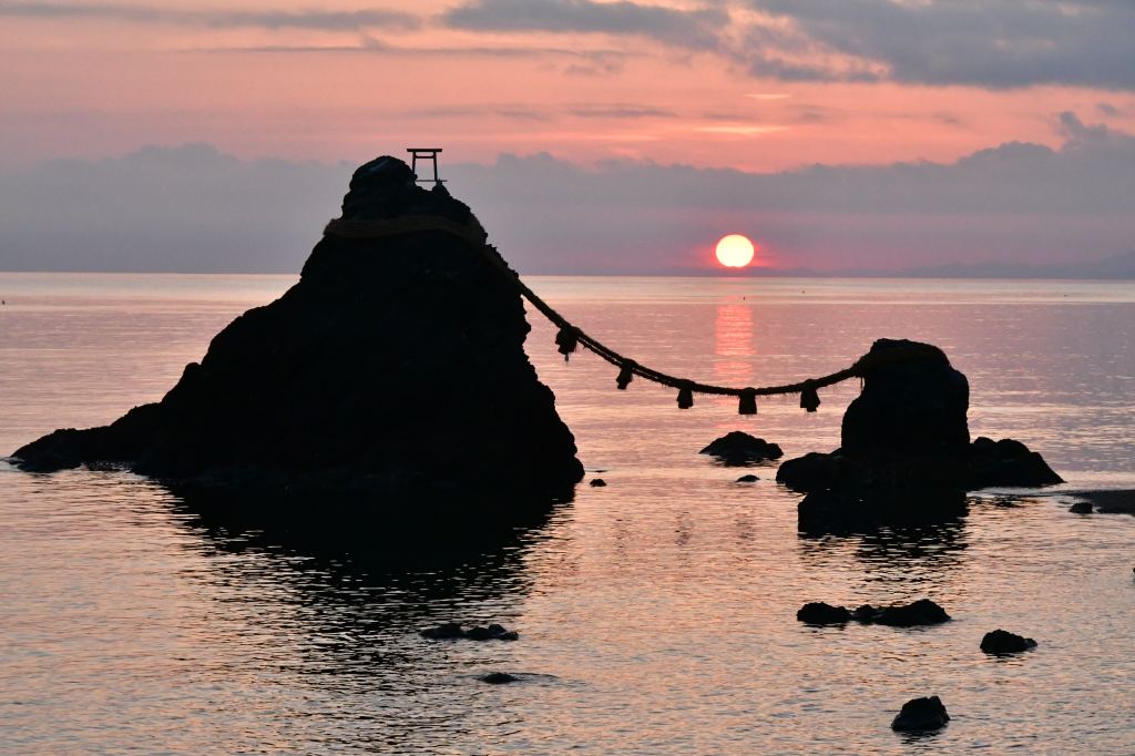 Completano il programma di viaggio alcuni dei landmark più romantici come le Meoto Iwa (“rocce marito e moglie”) a Ise nella prefettura di Mie. Legate da cinque corde sacre e immerse nel mare, le rocce rappresentano secondo la religione shintoista l’entità femminile e maschile, simbolo di fertilità e felicità coniugale. Qui, bellezza naturale e spiritualità si fondono, offrendo alle coppie un’esperienza romantica unica e un’introspezione nella complessa cultura giapponese. Un’altra meta imperdibile è la Angel Road, sull’isola di Shodoshima: un banco di sabbia visibile solo durante la bassa marea, dove si dice che attraversarlo con la persona amata garantisca amore eterno.