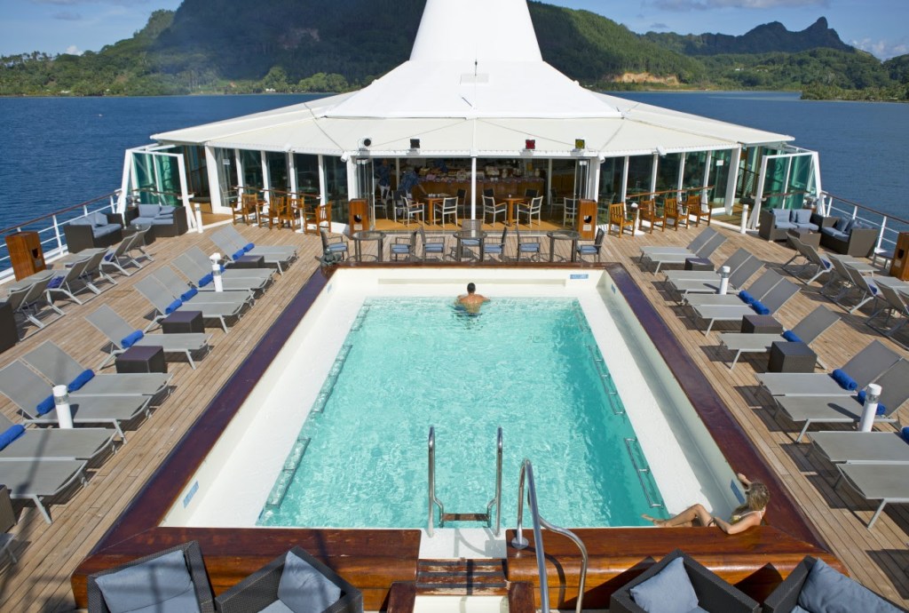 Windstar Cruises propone una formula di navigazione ispirata al mondo degli yacht di lusso. La compagnia opera nella regione da oltre 36 anni con la Star Breeze, nave all-suite da 312 ospiti, attiva tutto l’anno negli itinerari tra Le Isole di Tahiti. Le crociere combinano comfort di alto livello e dimensioni contenute, permettendo di accedere a baie e lagune dove le grandi navi non possono arrivare. Gli itinerari includono sia classici circuiti di una settimana tra Bora Bora, Moorea e Raiatea, sia viaggi più lunghi verso arcipelaghi remoti come le Tuamotu e le Marchesi. L’esperienza è arricchita dalla piattaforma marina della nave, che consente agli ospiti di praticare attività come kayak, paddleboard e snorkeling direttamente dal ponte.