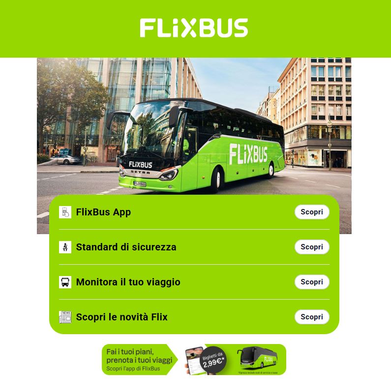 Fra i contenuti accessibili da FlixPortal vi sarà presto anche FlixPod, il primo podcast originale lanciato da FlixBus per raccontare l’esperienza quotidiana delle persone che viaggiano in autobus in Italia e l’evoluzione del mondo dei viaggi tout court, attraverso approfondimenti e interviste che illustrano il punto di vista sia dei passeggeri che del settore – conducenti, operatori e altri addetti ai lavori.