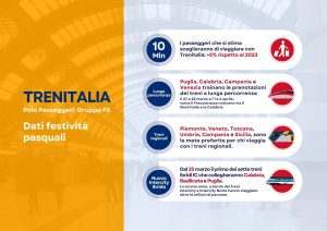 I passeggeri che a Pasqua sceglieranno Trenitalia, società del gruppo Fs, saranno circa 10 milioni, in aumento del 5% rispetto al 2023. Protagonista è il Sud Italia, che traina le prenotazioni dei treni a lunga percorrenza, con Puglia, Calabria e Campania in cima alla lista delle mete preferite, spiega Trenitalia.