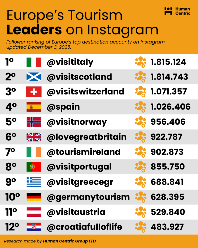 Visit Italy ha superato Visit Scotland, diventando il canale di destinazione più seguito d’Europa su Instagram. Un risultato che va oltre la dimensione dei numeri: rappresenta la maturità di un progetto