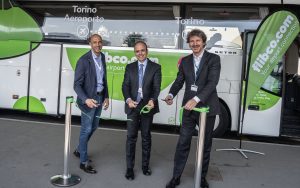 L’inizio del servizio è stato celebrato con un simbolico taglio del nastro la partenza dei primi bus che dall’aeroporto hanno raggiunto la città. Tra i presenti il CEO di Flibco.com Tobia Stüber, insieme a Giuseppe Martino Country Manager di Flibco.com Italia, l’AD di Torino Airport Andrea Andorno e il Direttore Aeroportuale Nord Ovest di Enac Adolfo Marino.