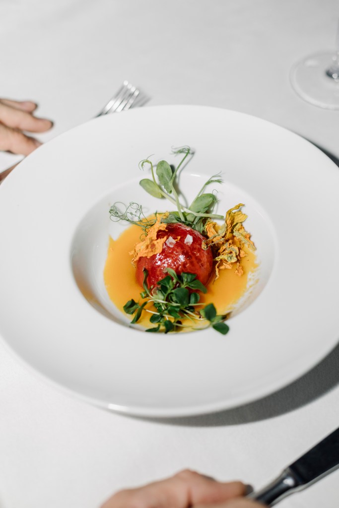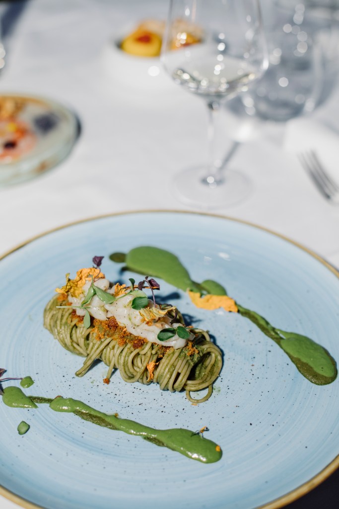 Aquadulci racconta la Sardegna più autentica e lo fa anche attraverso una proposta gastronomica che va oltre le formule consuete. Il ristorante à la carte è concepito come un luogo in cui ogni piatto è un dialogo diretto con il territorio: dall’aragosta di Sant’Antioco alla bottarga di Cabras, fino ai pomodori Camona di Pula e al prosciutto di Villagrande. La pasta fresca viene lavorata ogni mattina secondo le tecniche tramandate dalla tradizione locale, mentre il pescato del giorno – scelto all’alba al mercato – determina ed impreziosisce i piatti della sera. Non è cucina da effetto, ma cucina di sostanza: pochi ingredienti combinati con la cultura di chi conosce ogni sapore che il mare, la terra e l’aria di Sardegna sanno regalare.