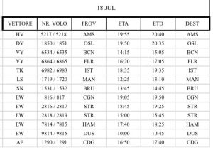 Sono 13 i voli ex Catania del 18 luglio 2023 riprogrammati sull’aeroporto di Palermo (gli orari sono indicativi e suscettibili di variazioni operative da parte del vettore). In ogni caso, ai passeggeri è consigliato di contattare la compagnia aerea.