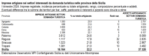 La Sicilia è la prima regione in Italia per imprese artigiane che lavorano nel turismo. Un primato legato sì alle bellezze paesaggistiche e naturalistiche dell’Isola, ma strettamente legato anche all’alta qualità dei servizi offerti dalle imprese. È quanto emerge dall’ultimo report dell’Osservatorio economico di Confartigianato Sicilia. Sul versante dell’offerta, alla fine del primo trimestre 2024 infatti, in Sicilia le imprese artigiane operanti in settori di attività interessati dalla domanda turistica sono 16.164, pari al 22,2% dell’artigianato totale, valore che appunto la posiziona prima nella classifica nazionale, e danno lavoro a 37.328 addetti.
