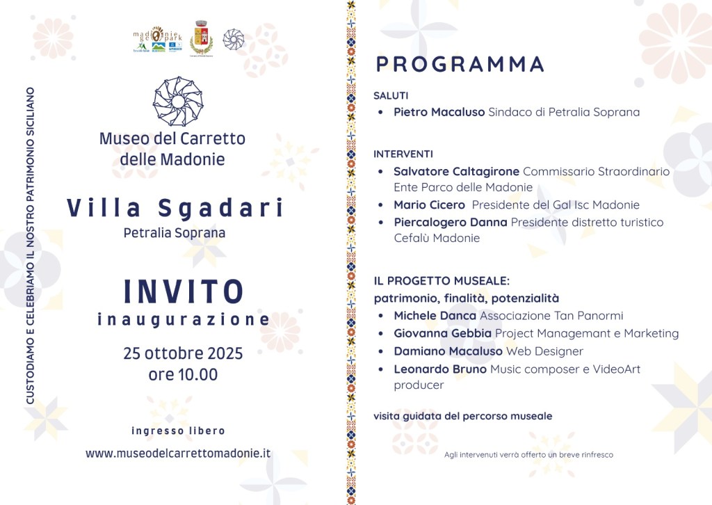 Novità nell’offerta culturale madonita. Nella settecentesca Villa Sgadari, a Petralia Soprana, apre il Museo del carretto e del pupo siciliano Madonie: una sede permanente dedicata a due degli elementi identificativi della tradizione artistica e artigianale, per la cui realizzazione si manifestano il genio creativo e l’abilità delle arti popolari. L’inaugurazione è in programma sabato 25 ottobre alle 10.