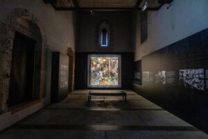 Da giugno scorso è stato riallestito lo spazio che accoglie La Vucciria di Renato Guttuso: una vera sala immersiva da cui la tela balza fuori, con il suo carico di colori, simboli, voci, riferimenti fotografici e biografici al pittore bagherese. La tela diventa così cuore del programma di valorizzazione che vede lavorare insieme l’Università e il SiMuA (i Servizi Museali di Ateneo) e CoopCulture che, dopo aver curato e gestito la riapertura, si è aggiudicata la gara europea di affidamento dei servizi per i prossimi anni, dopo essere già concessionaria per i siti della Regione Siciliana, i Parchi archeologici di Valle dei Templi, Selinunte e Segesta, e a Palermo il Museo archeologico Salinas.