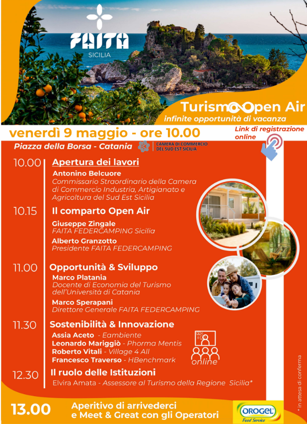 La FAITA nazionale e quella regionale chiamano a convegno i gestori del turismo all’aria aperta. La federazione si propone di aggiornare i gestori riguardo le leggi che governeranno il turismo nei prossimi anni e le incombenze fiscali. Inoltre si parlerà di presente e previsioni per il futuro del turismo all’aria aperta. L’appuntamento è per venerdì 9 maggio alle 10 a Piazza della Borsa a Catania.