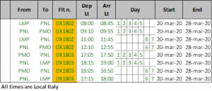 Cambiano gli operativi dei voli da Lampedusa e Pantelleria operati da DAT a partire da oggi, venerdì 20 marzo e sino al 28 marzo.