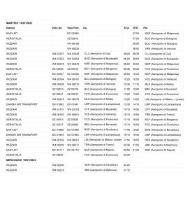 Questi i voli invece in programma oggi a Comiso: