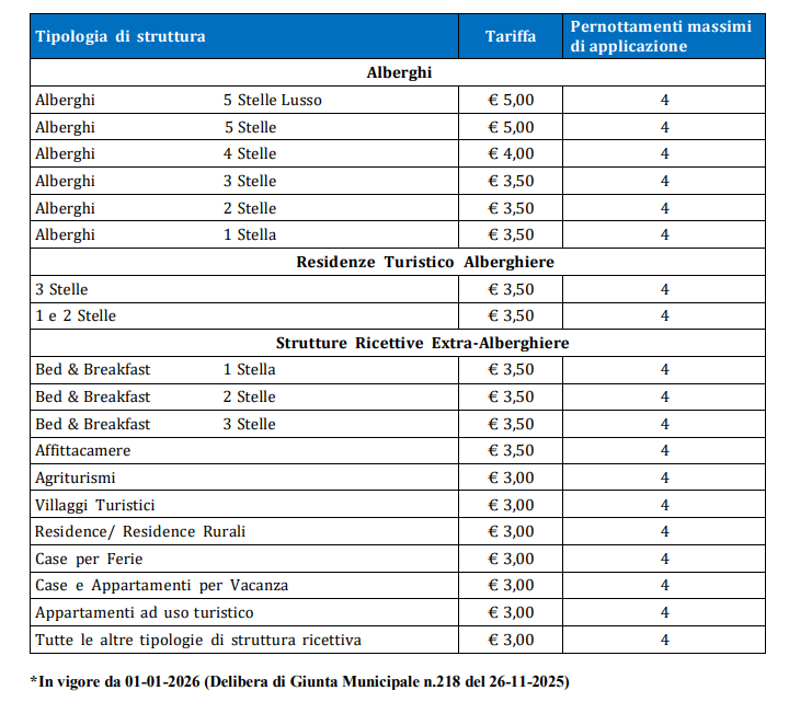 Il nuovo regolamento comunale prevede anche delle modifiche alle tariffe della tassa di soggiorno: