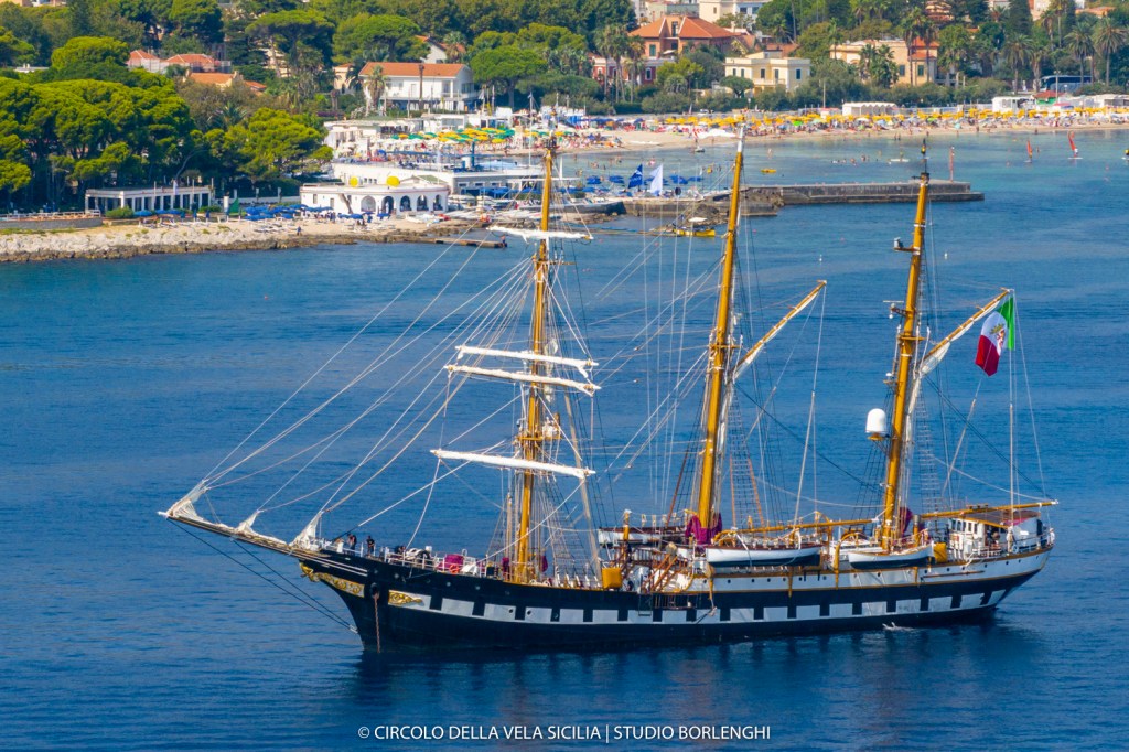 A sottolineare l’importanza dell’evento, partito nel Golfo di Mondello martedì 19 agosto, la presenza del Palinuro, veliero scuola della Marina Militare, il “fratellino” più piccolo della Amerigo Vespucci attualmente ai lavori, che ha incantato tutti coloro che hanno potuto ammirarlo da terra o anche visitarlo a bordo, particolarmente suggestivo tutto illuminato la notte con i colori della bandiera italiana.