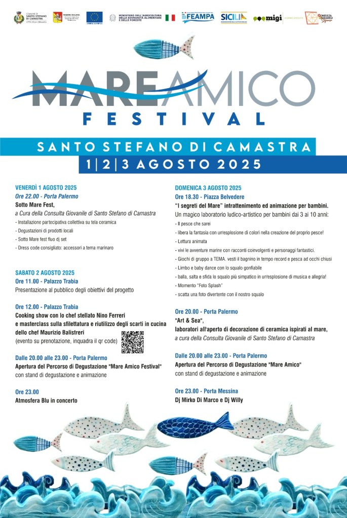 “Mare Amico Festival è un’occasione per riscoprire il valore del mare, dell’artigianato e della comunità, attraverso un programma pensato per tutte le età – dice il sindaco di Santo Stefano di Camastra, Francesco Re – Un’opportunità per far conoscere le specie di pesce meno utilizzate in cucina, ma dall’alto valore nutrizionale e soprattutto iniziare a parlare concretamente della tutela del nostro mare”.