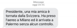 Oggi però il presidente della Regione Nello Musumeci è tornato alla carica. Il governatore ha pubblicato sulla propria bacheca Facebook un sms ricevuto da una cittadina che segnala assenza di accertamenti per i passeggeri di un volo da Milano.