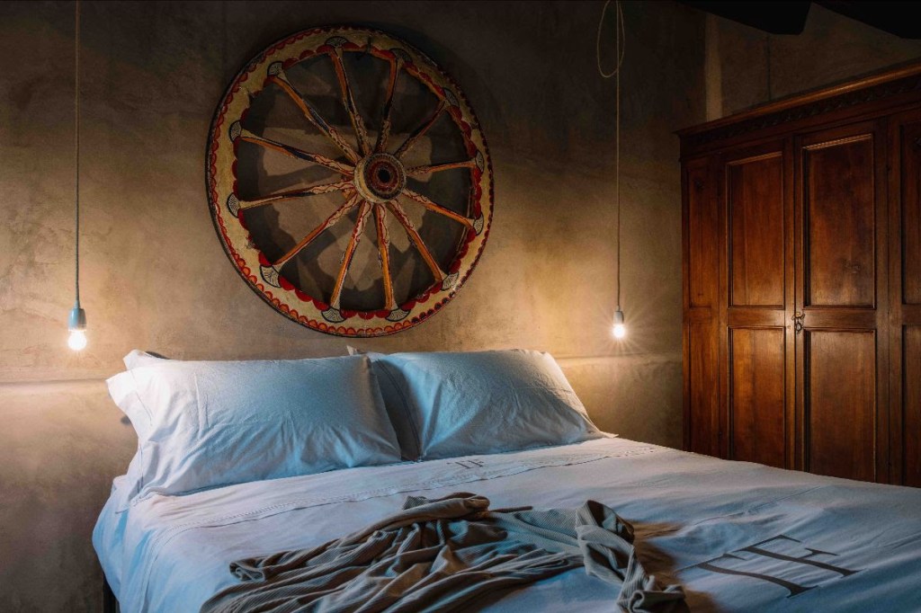 La cantina guidata da Jacopo Maniaci, infatti, mette a disposizione anche sei camere di diverse dimensioni e collocazioni: tre esterne con ingresso indipendente – Viddirami, Litturina e Istenna – e tre interne scolpite direttamente sopra l’antico Palmento del XVII secolo (Tina, Canedda, Carateddu). Una dimensione di rifugio, un luogo in cui riconnettersi con la natura pura e vibrante del vulcano. Qui pizzi siciliani, pietra lavica decorata, ferro brunito, oggetti d’arte e memorie siciliane si mescolano alla natura primitiva di forme e materiali, lasciando il segno di una visione contemporanea da esprimere in modo autentico.