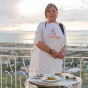 Graziella, di Campofelice di Roccella, da diversi anni accoglie gli ospiti nella sua meravigliosa villa con giardino a pochi passi dal centro della città: “I miei piatti riflettono le influenze normanne, arabe e greche che hanno dato vita alla cucina locale, e sono preparati esclusivamente con prodotti a Km0: olio, mandorle, olive, pesce, conserve e formaggi, e anche i vini. Perché il cibo è soprattutto cultura: assaggiare significa visitare e toccare con mano la storia di Cefalù”.