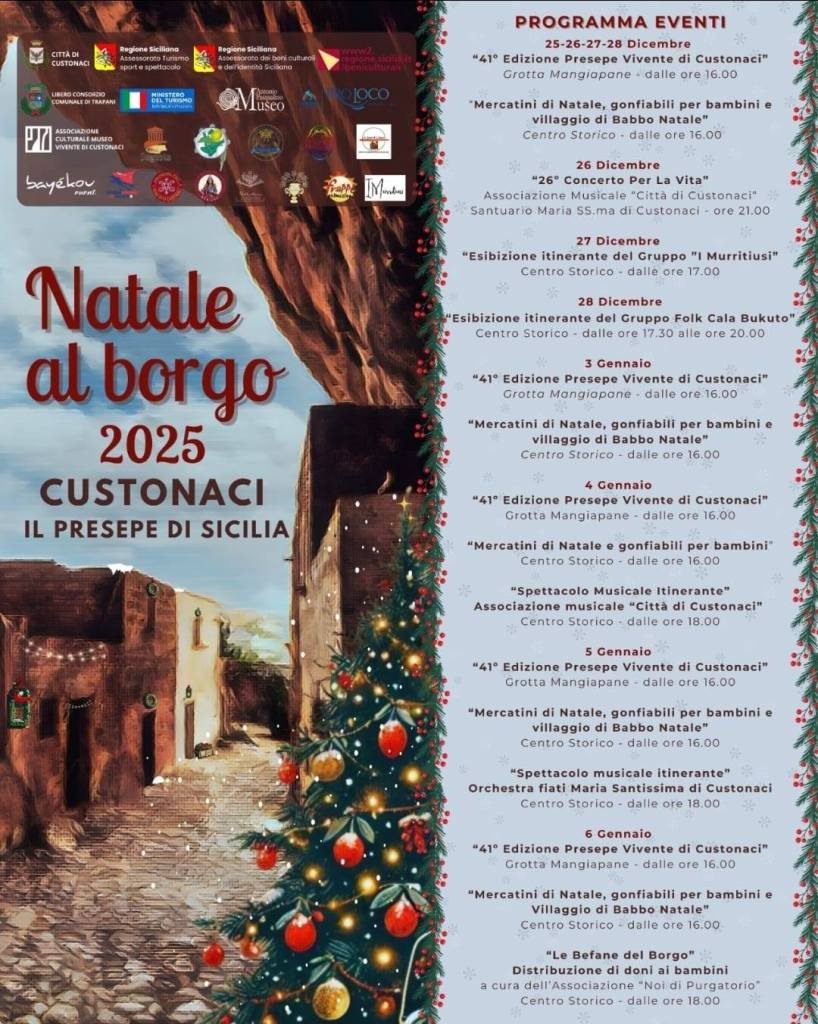 Custonaci si prepara a vivere, ancora una volta, la magia delle feste con il “Natale al Borgo 2025”, un programma ricchissimo che trasformerà la cittadina collinare in un grande palcoscenico di tradizioni, spettacoli e atmosfere antiche.