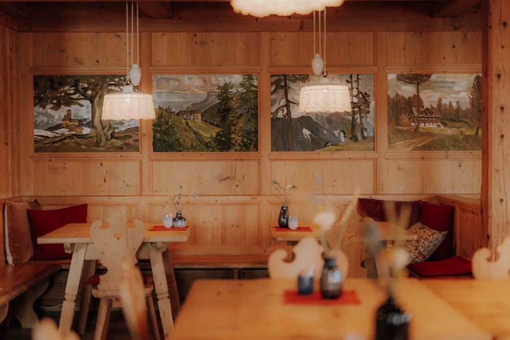 Alla Stube Ida, a 1500 metri di quota, si respira un’atmosfera calda e tradizionale: aperta tutto il giorno, propone una cucina locale genuina reinterpretata in chiave moderna. La stufa in maiolica centenaria al suo interno riscaldava un tempo l’antico albergo di montagna, che sorgeva dove attualmente si trova il vigilius mountain resort. Nelle giornate di sole, la terrazza rende le pietanze ancora più apprezzate.
